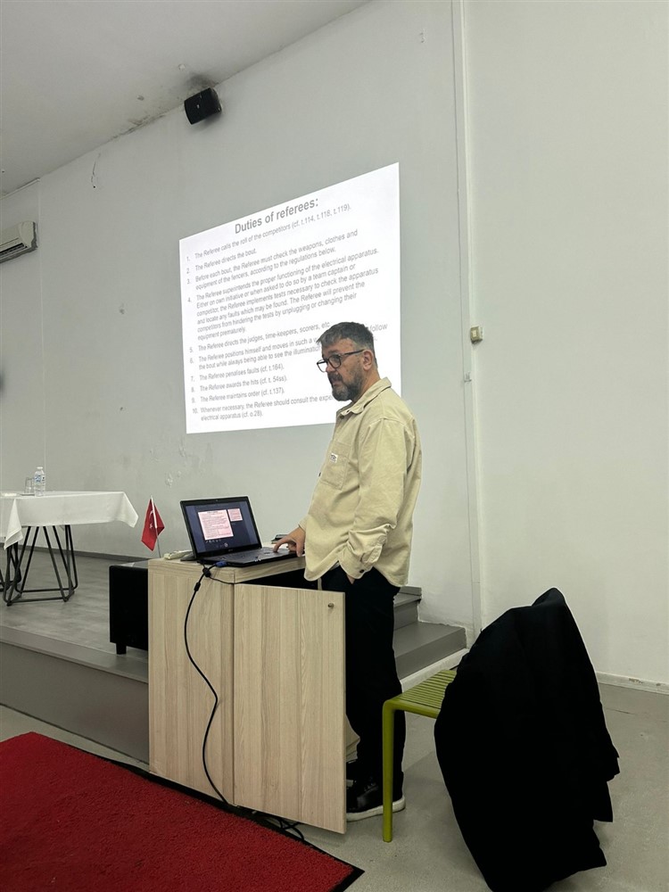 Tecrübeli spor adamı, bu süre zarfında sporcularla birebir çalışmalar gerçekleştirirken, aynı zamanda düzenlenen “Oyun Kuralları ve Hakemlik Semineri” kapsamında antrenörler, hakemler, sporcular ve velilerle bir araya geldi. Seminerde eskrimin temel prensipleri, oyun kuralları ve hakemlik bakış açısı ele alınarak katılımcılarla kapsamlı bir bilgi paylaşımı yapıldı.