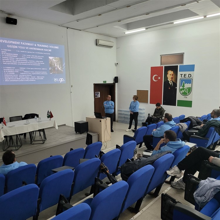Tenis Koordinatörümüz Engin Kratzer ve Performans Direktörümüz Ivona Horvat’ın katılımıyla düzenlenen seminerde, kulüp antrenörlerimizle birlikte “Tenis Okulundan Milli Oyunculuğa Giden Yol” başlıklı gelişim modeli paylaşıldı. Program kapsamında, sporcuların erken yaşlardan elit seviyeye uzanan süreçte ihtiyaç duyduğu teknik, fiziksel ve zihinsel unsurlar ele alındı.