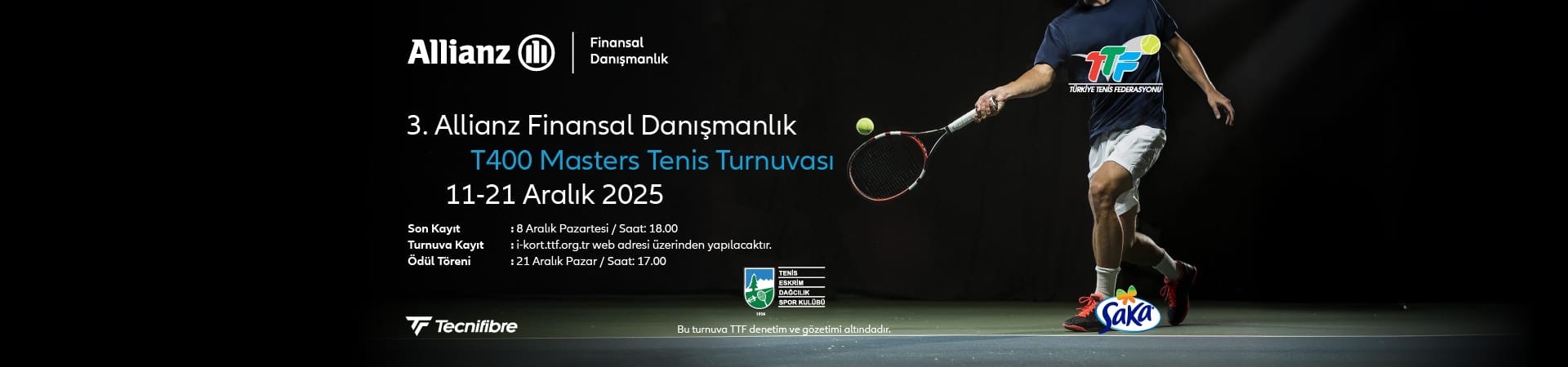 3. Allianz Finansal Danışmanlık “T400” Masters Tenis Turnuvası, 11 Aralık Perşembe günübaşlayacak ve 21 Aralık 2025 Pazar günü sona erecek.